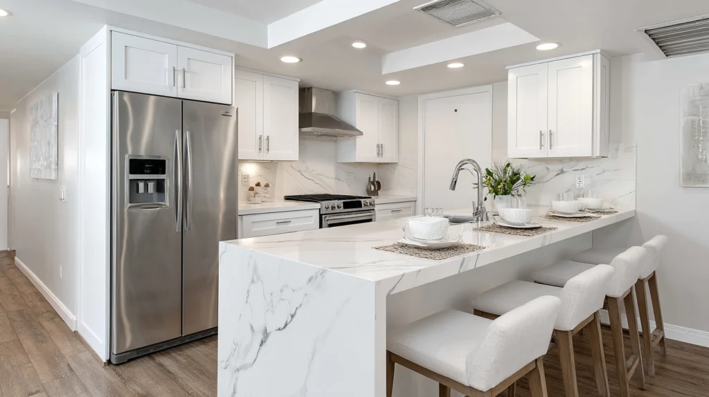 When you choose a color for your painted cabinets consider your countertop, backsplash and flooring. Matching style across the kitchen ensures the final result is cohesive. If you’re unsure of the right tone, a professional consultation can help you select a palette that complements your space.