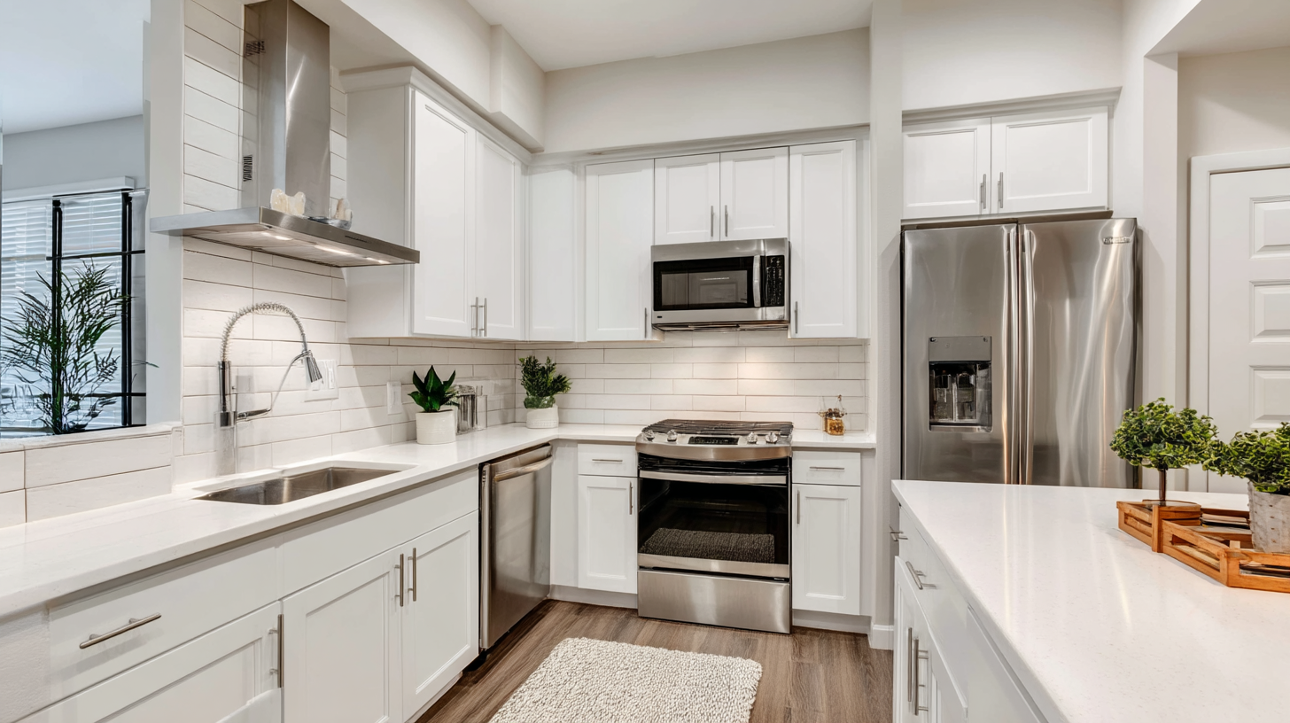 | White Shaker Cabinets | Matte black or brushed brass pulls |