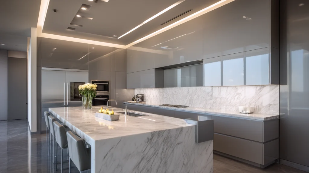 Hidden storage solutions, integrated appliances, and smart layout planning help maintain a cleaner, more serene kitchen experience with fewer visual distractions.