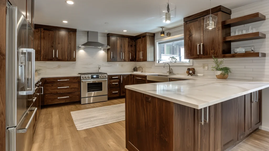 - Stain: Offers the natural look of wood cabinets, letting grain show, perfect for a warm, classic or transitional kitchen.